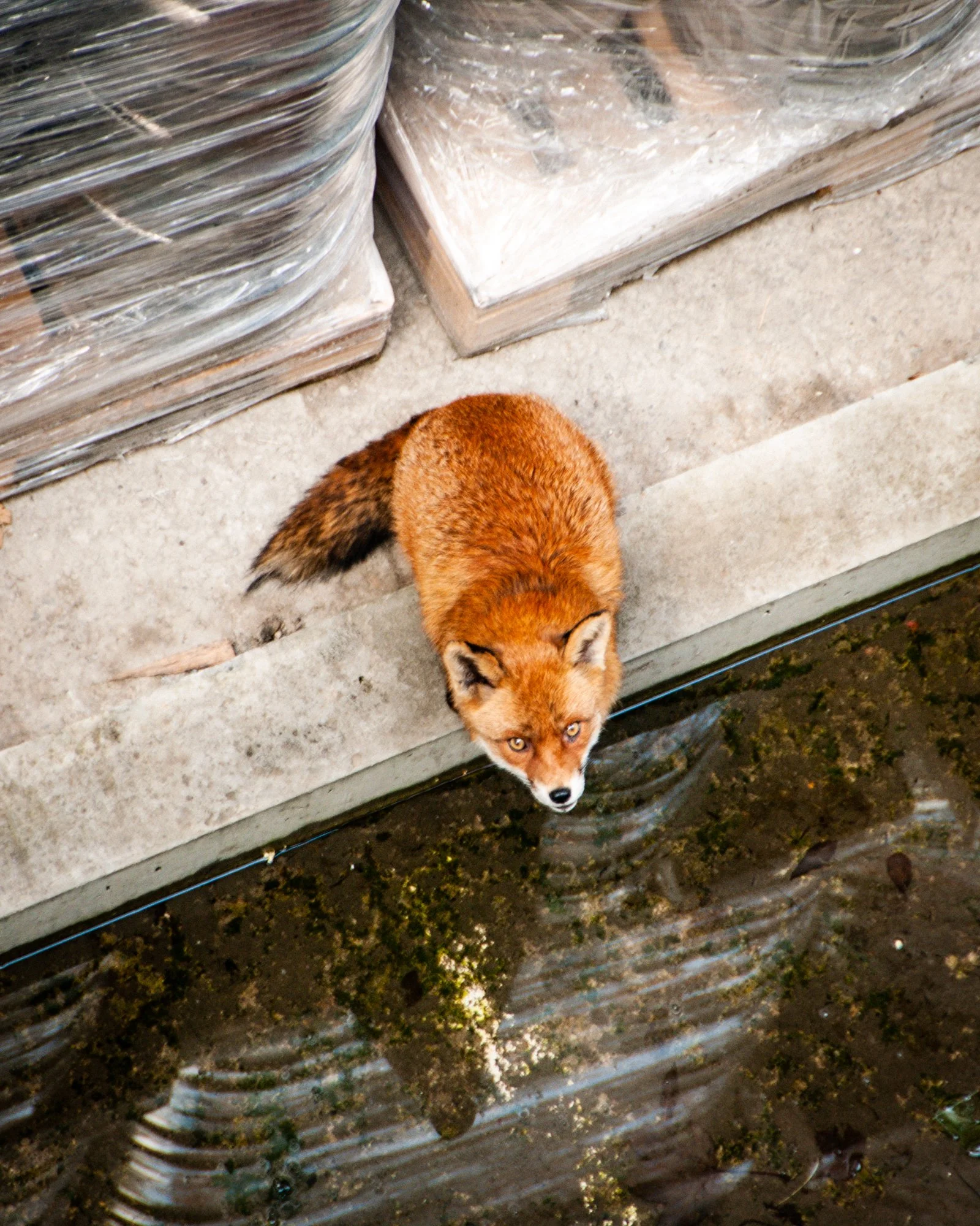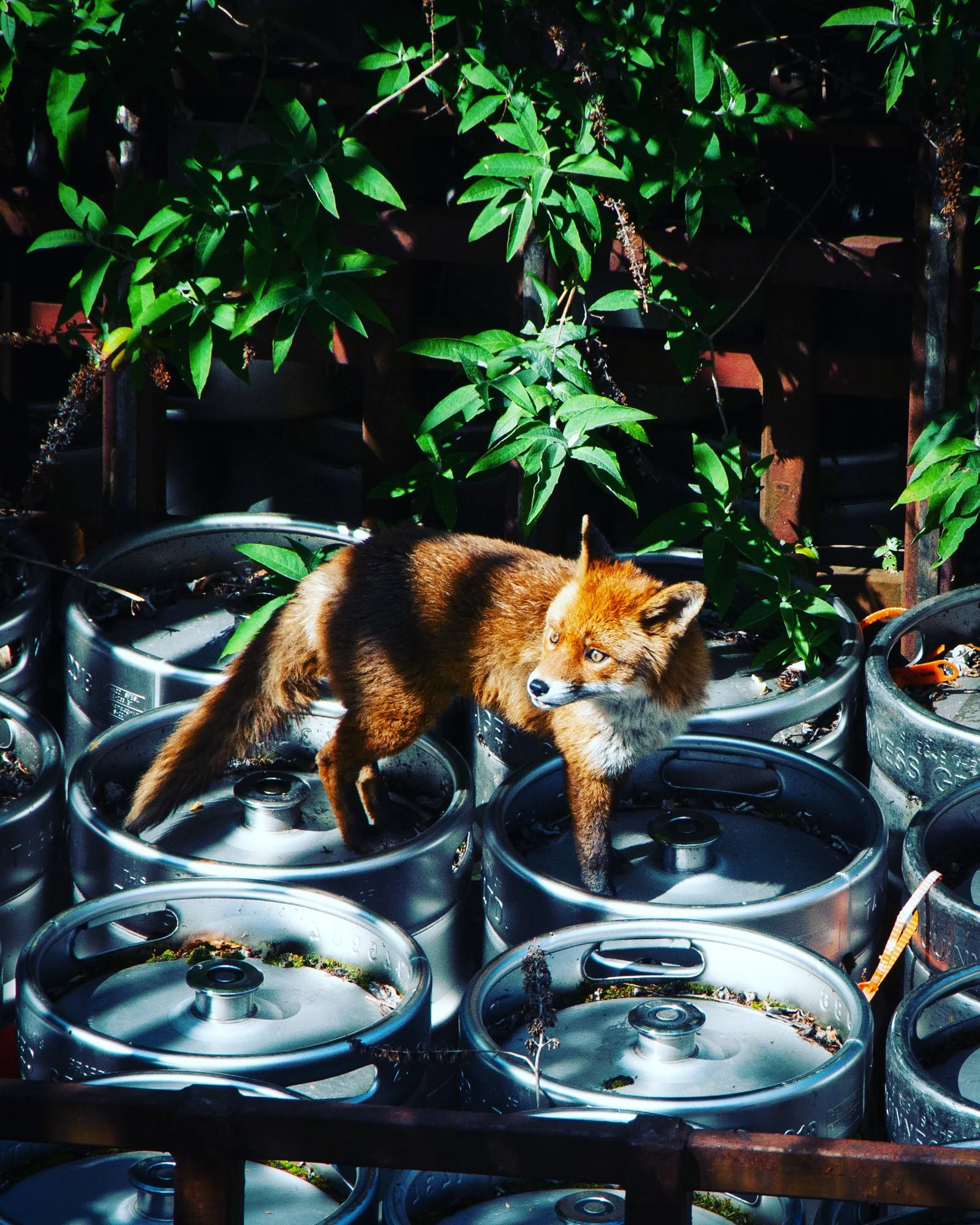 We live beside the Guinness brewery in Dublin, the Kegyard is literally our back garden. At the very start of the Covid pandemic while I was working from home looking out the window, a little Fox cub fell from an adjacent yard around 50 feet into the Kegyard yard below the poor little thing was badly injured (broken leg we think). His mother (in the adjacent yard) had four other young foxes could hear him crying, she paced up and down for days, but there was literally no way she could get to the cub. We tried contacting security in Guinness, even tried flagging down some of the drivers but there was nothing anyone could do as the little guy had gone hiding in among the thousands of kegs. I managed to get the cubs attention a few days later and threw him down some scraps. We are both vegetarian so he wasnt really interested so I decided the only way this little guy had a chance was to get him some food. I started with hotdogs from the local shop and he instantly perked up, so much so that within a couple of days he had made a really marked improvement. I then moved onto chicken, and within a week he was much much better. He was no longer dragging his leg across the yard and started to look better every single day. We named him Junior as we were binging the Sopranos at the time and it stuck. Over the next 3 years he was a daily visitor. He would climb up on top of the kegs to the highest point (sometimes 80 feet about the yard) so he could get into my eyeline to unsure prompt chicken delivery. We subsequently found out that ‘he’ was actually a ‘she’ but the name still stuck. We discovered so many things about urban foxes during that time, they love Linda McCartney vegetarian sausages, tofu, eggs, AirPods (long story) not big fans of spaghetti, pasta in general very fussy about bread has to be crusty or white no brown bread please and of course chicken, we cooked her a roast chicken for Christmas Day in 2022 and made her burgers for her ‘birthday’, Jesus Christ Covid was a mad time wasn't it?